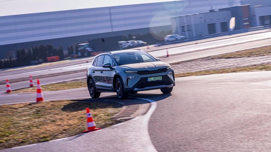 Testujemy na pętli toru i płytach poślizgowych ODTJ Tor Łódź nową Skodę Elroq.